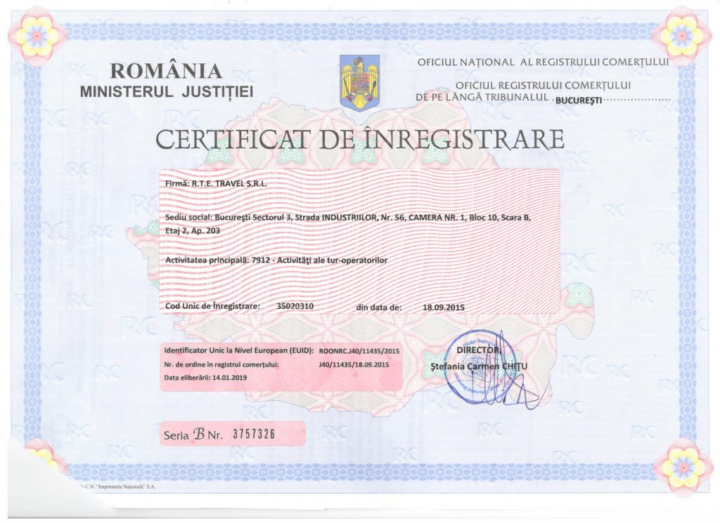 • The company it’s administrated by R.T.E. TRAVEL SRL, CUI 3502010, ONRC J40/11435/2015.