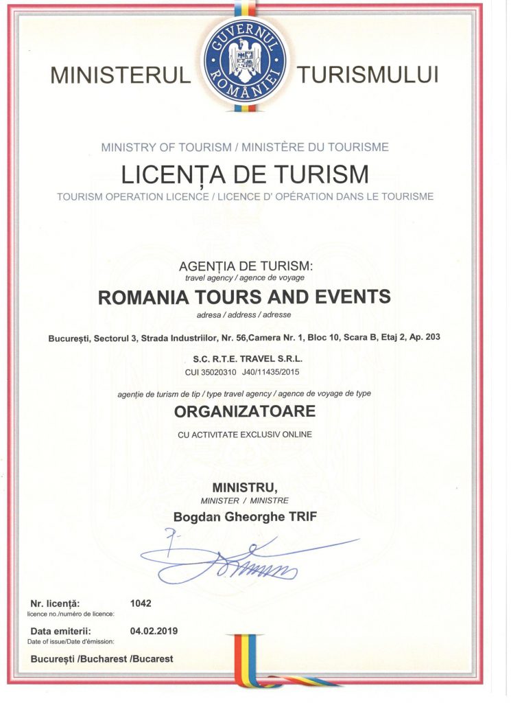 • INCENTIVE ROMANIA is one of our brands, together with ROMANIA TOURS AND EVENTS. We are an authorized tour-operator by the Romanian Authorities with license no. 1042, while our operations are insured by German Romanian Assurance S.A., insolvency insurance no. 3146, valid until the 05th of January 2022.